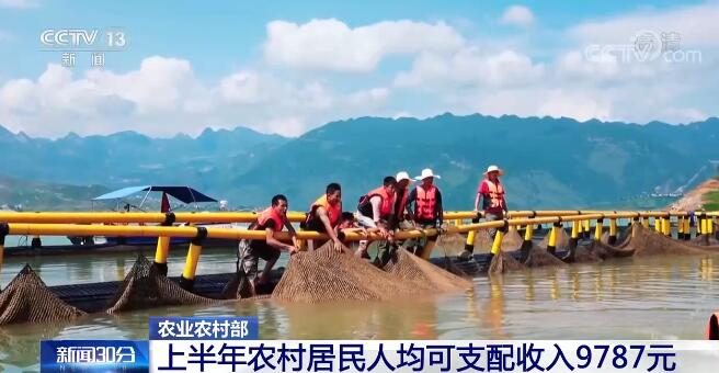 上半年,鄉(xiāng)村富民產(chǎn)業(yè)穩(wěn)定發(fā)展,農(nóng)村就業(yè)增收渠道不斷拓寬。全國農(nóng)副食品加工業(yè)增加值同比增長3.3%,農(nóng)產(chǎn)品網(wǎng)絡(luò)零售額達(dá)2900億元,同比增長12.4%。截至6月末,返鄉(xiāng)農(nóng)民工就業(yè)率達(dá)90.7%,同比提高2個百分點(diǎn)。在產(chǎn)業(yè)帶動、就業(yè)創(chuàng)業(yè)拉動下,上半年農(nóng)村居民人均可支配收入9787元,實(shí)際增長4.2%。