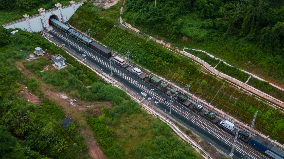 北京時(shí)間7月19日晨,我軍赴老撾?yún)⒓印昂推搅熊?chē)-2022”的衛(wèi)生列車(chē)從磨憨站駛出,通過(guò)“一隧連兩國(guó)”的友誼隧道,進(jìn)入老撾境內(nèi)。這是中老鐵路開(kāi)通以來(lái),我軍首次組織衛(wèi)生列車(chē)跨境鐵路投送。