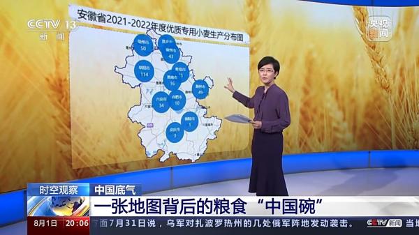 今年安徽夏糧總產(chǎn)量達(dá)1722.4萬(wàn)噸,居全國(guó)第3位;比2021年夏糧增產(chǎn)22.5萬(wàn)噸,增量居全國(guó)第2位,全省夏糧呈現(xiàn)面積、單產(chǎn)、總產(chǎn)和效益“四增”的特點(diǎn)。占比74%的優(yōu)質(zhì)專用小麥,助力增產(chǎn)。再回到老蔡,作為糧食經(jīng)紀(jì)人,還差20萬(wàn)畝的小麥?zhǔn)召?gòu)目標(biāo),老蔡決定主動(dòng)出擊。究竟去哪里能收購(gòu)到優(yōu)質(zhì)小麥呢,老蔡的收糧經(jīng)里的第三個(gè)關(guān)鍵詞出現(xiàn)了:地圖。
