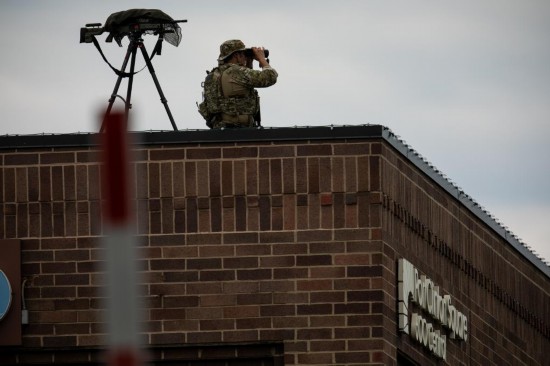 7月4日,一名狙擊手在美國伊利諾伊州海蘭帕克市警戒監(jiān)視。新華社發(fā)(文森特·約翰遜攝)