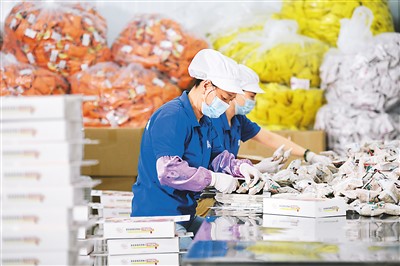 福建省寧德市古田縣積極落實(shí)階段性緩繳社保工作,并出臺減稅降費(fèi)、金融扶持等各項(xiàng)紓困政策,幫助當(dāng)?shù)仄髽I(yè)渡過難關(guān),實(shí)現(xiàn)健康發(fā)展。圖為7月23日,工人在古田縣晟農(nóng)無公害銀耳基地打包銀耳產(chǎn)品。