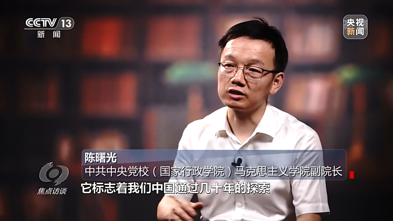 中共中央黨校(國家行政學(xué)院)馬克思主義學(xué)院副院長 陳曙光:它標(biāo)志著中國通過幾十年的探索,找到了一條符合中國國情的,實現(xiàn)中華民族偉大復(fù)興的正確道路;同時它也標(biāo)志著我們拓展了發(fā)展中國家走向現(xiàn)代化的途徑,為廣大的發(fā)展中國家實現(xiàn)現(xiàn)代化,開辟了一條不同于西方現(xiàn)代化道路的新的模式;第三標(biāo)志著我們?yōu)槿祟愇拿鬟M步作出了中國的貢獻。