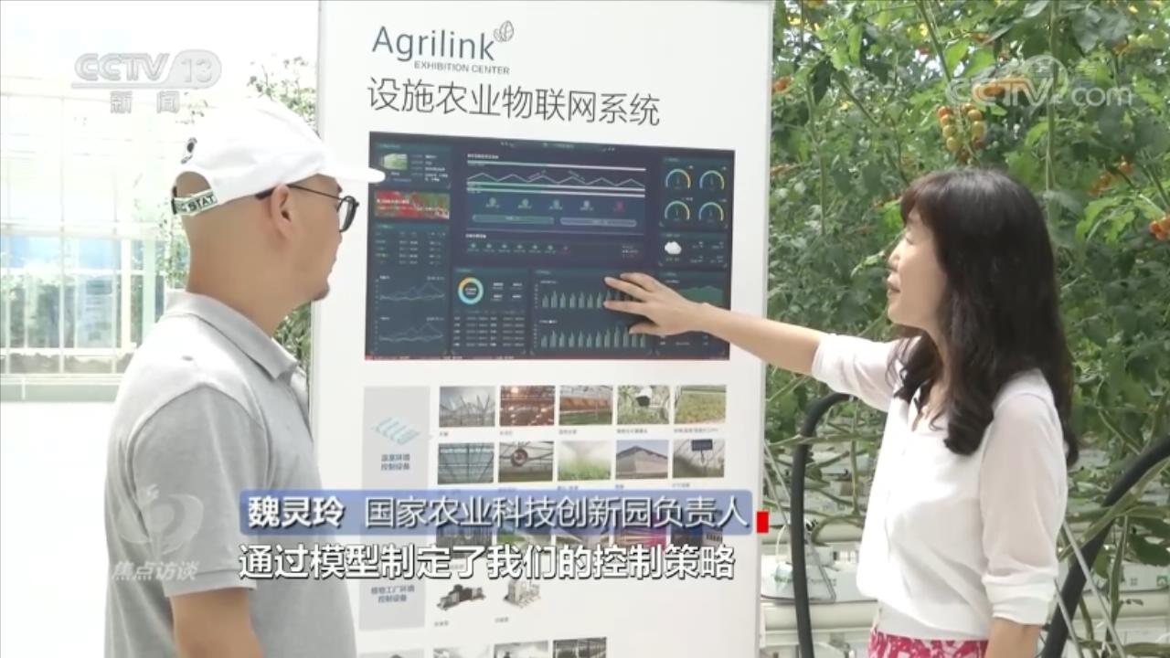 國家農(nóng)業(yè)科技創(chuàng)新園負責(zé)人魏靈玲說:“我們采集了大量的數(shù)據(jù),進行了植物生理模型建設(shè),通過模型制定了控制策略。在不同的控制策略下,我們有相對的執(zhí)行機構(gòu),比如說開天窗或者是蓋遮陽或者是保溫,另外濕簾風(fēng)機的啟動,包括噴霧的啟動,這些都是一堆的執(zhí)行機構(gòu)!