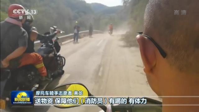 摩托車騎手志愿者 黃龍:送物資,保障消防員有喝的,有體力。盡一下微薄之力。
