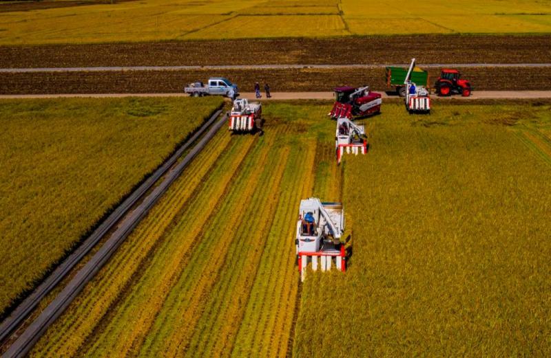 △吉林省地處享譽(yù)世界的“黃金玉米帶”和“黃金水稻帶”。9月8日,吉林白城水稻進(jìn)行機(jī)械化收割。