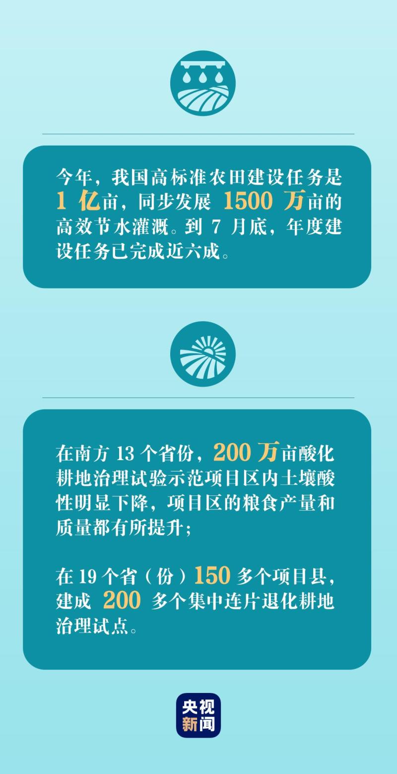 農(nóng)業(yè)農(nóng)村部有關(guān)負(fù)責(zé)人介紹,今年以來,我國加強(qiáng)農(nóng)田基礎(chǔ)設(shè)施建設(shè),有力推進(jìn)耕地地力保護(hù)和提升,提高糧食產(chǎn)能。