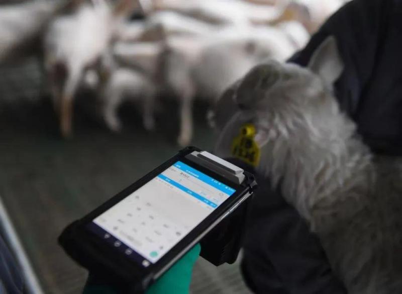 △浙江省湖州市長興縣呂山鄉(xiāng),湖羊智慧循環(huán)產(chǎn)業(yè)園的工作人員在掃描湖羊幼崽耳朵上的數(shù)字芯片。