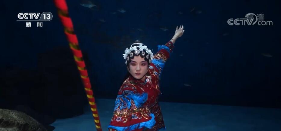 在上海海昌海洋公園,專業(yè)的水下演員身著傳統(tǒng)戲曲服飾,正在上演一出精彩的國潮水下刀馬旦,讓游客領(lǐng)略到別樣的國粹之美。
