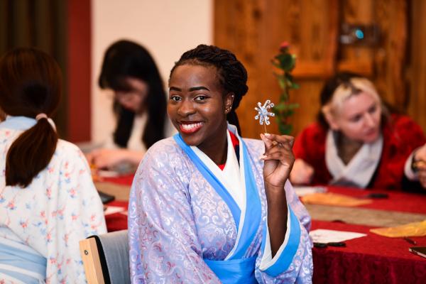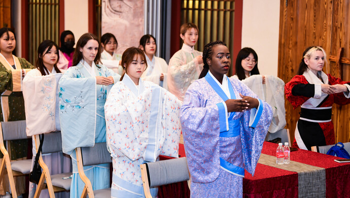 來自俄羅斯的安琳娜作為國際學(xué)生代表上臺(tái)行禮,她覺得這是一次寶貴的體驗(yàn),“拜師禮的每個(gè)手勢(shì)、每個(gè)道具都有重要的意義,中國傳統(tǒng)文化的魅力讓人著迷!睆堊泳┍硎,作為一名中國學(xué)生,之前也從未參加過傳統(tǒng)入學(xué)禮。“今天能看見不同國家的中外學(xué)生一起著漢服、行漢禮,很有感觸,欣慰于如此‘寶藏’被世人共賞!