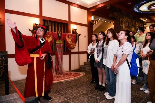 未入學(xué)宮,同學(xué)們已被經(jīng)典建筑形制的細(xì)節(jié)與精妙深深折服。踏進(jìn)學(xué)宮,內(nèi)中一磚一石,亦皆有奧妙。同學(xué)們跟隨向?qū)У哪_步,目不暇接,美不勝收,夢(mèng)回那令人神往的盛世。來自敘利亞的留學(xué)生王鴻宇邊聽講解邊不住點(diǎn)頭,忍不住感慨中華文化博大精深。