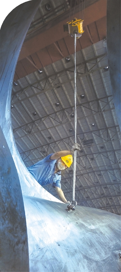 工人正在對(duì)白鶴灘水電站百萬(wàn)千瓦水電機(jī)組轉(zhuǎn)輪葉片進(jìn)行裝配作業(yè)。白鶴灘機(jī)組精品標(biāo)準(zhǔn)要求的磁軛中心偏差為0.15毫米,疊裝形成的磁軛中心相對(duì)理論中心偏差不超過(guò)0.02毫米,遠(yuǎn)優(yōu)于精品標(biāo)準(zhǔn)要求。