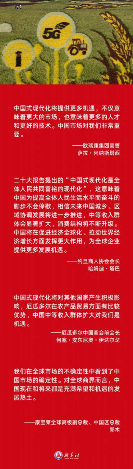全球工商界人士在接受新華社記者采訪時普遍認為,中共二十大不僅為新時代中國發(fā)展擘畫藍圖,也堅定了各國企業(yè)深耕中國市場的信心與決心。全球工商界人士期待進一步加強同中國的合作。