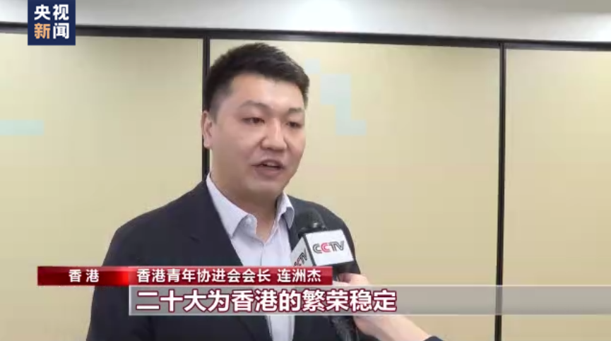香港青年協(xié)進(jìn)會會長 連洲杰:二十大為香港的繁榮穩(wěn)定,為香港推進(jìn)由治及興的新階段注入了新的動力,習(xí)近平總書記提到人才是第一資源,創(chuàng)新是第一動力,我相信香港青年會圍繞著二十大的宏偉藍(lán)圖發(fā)揮自身的優(yōu)勢,為祖國的偉大復(fù)興作出新的貢獻(xiàn)。