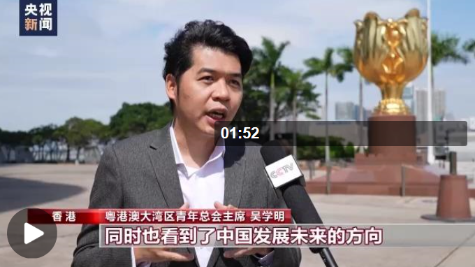 粵港澳大灣區(qū)青年總會主席 吳學(xué)明:習(xí)近平總書記給我們擘畫出青年很美好的一個藍(lán)圖,同時也看到了中國發(fā)展未來的方向,青年強則國家強,我們應(yīng)該用我們成功的經(jīng)歷去感染跟啟迪更多的青年能共同奮斗,團(tuán)結(jié)一致,貢獻(xiàn)香港,貢獻(xiàn)我們的祖國。