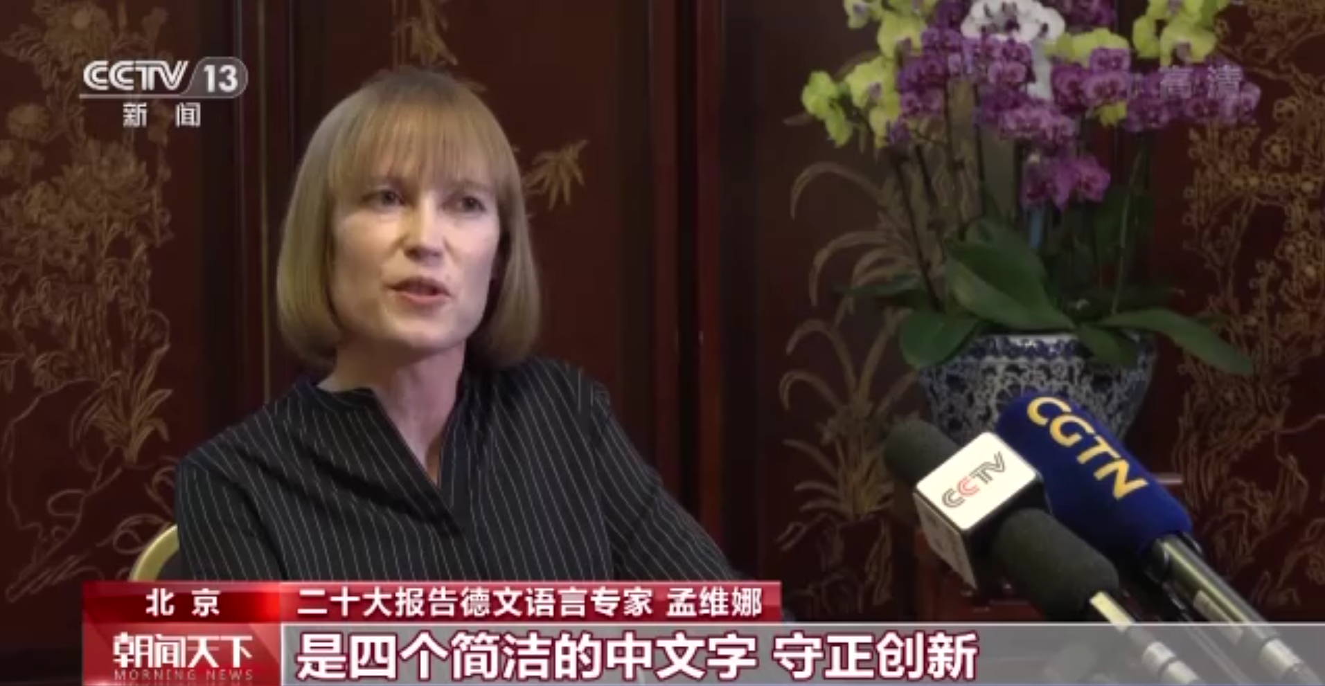 二十大報(bào)告德文語言專家 孟維娜:報(bào)告中有一個(gè)表述深深地留在我腦海中,是四個(gè)簡潔的中文字,守正創(chuàng)新。它和我在中國十多年的所見所感是一致的,一方面守住中國的傳統(tǒng)與文化根脈,另一方面又敢于去創(chuàng)新。