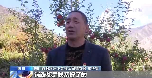 四川阿壩州小金縣沃日鎮(zhèn)農(nóng)民 龍華貴:今年是我們鎮(zhèn)蘋果新品種成熟的第一年,銷路都是聯(lián)系好了的,人均靠蘋果增收1500元以上。