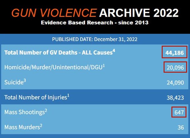 尤其令人觸目驚心的是,造成除槍手外4人以上死傷的大規(guī)模槍擊案在2022年共發(fā)生了647起。