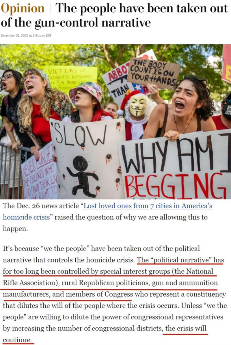 《華盛頓郵報(bào)》刊文指出,長(zhǎng)期以來(lái),有關(guān)槍支的“政治敘事”一直被美國(guó)全國(guó)步槍協(xié)會(huì)(NRA)所代表的特殊利益集團(tuán)、保守派政客、槍支制造商所控制。除非美國(guó)民眾愿意通過增加國(guó)會(huì)選區(qū)數(shù)量來(lái)削弱國(guó)會(huì)議員的權(quán)力,否則槍支暴力危機(jī)將無(wú)限期繼續(xù)下去。
