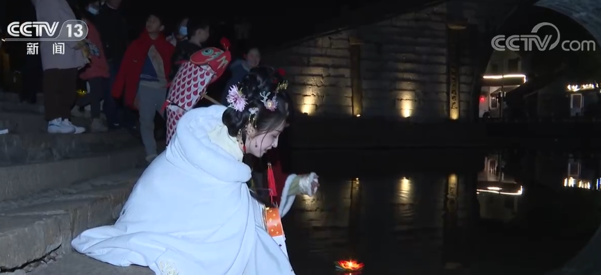 夜幕降臨,身著傳統(tǒng)服飾的人們手提燈籠,行走在青石板街上,將一盞盞承載著心愿的花燈放入河中。在掛滿燈謎牌子的街市,游客和居民參與猜燈謎活動(dòng),感受傳統(tǒng)文化與古建筑的魅力。