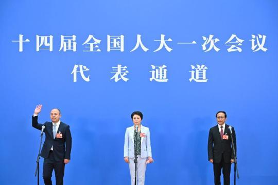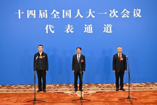 全國兩會期間,人民大會堂新聞發(fā)布廳,十四屆全國人大一次會議的三場“代表通道”如約開啟。