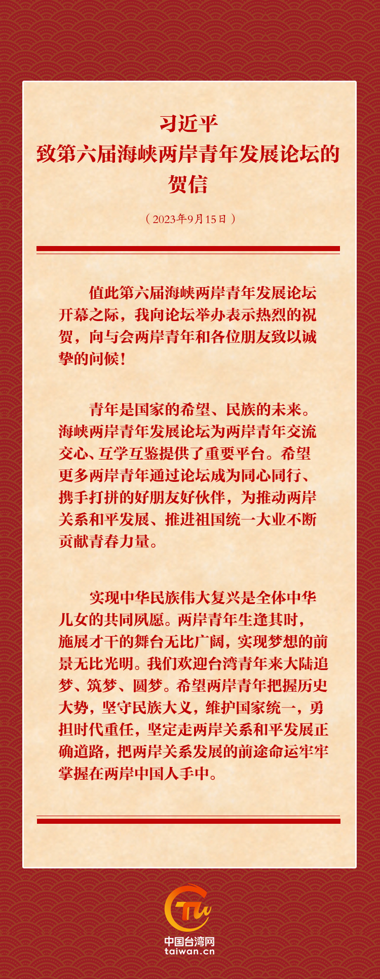 習(xí)近平致第六屆海峽兩岸青年發(fā)展論壇的賀信