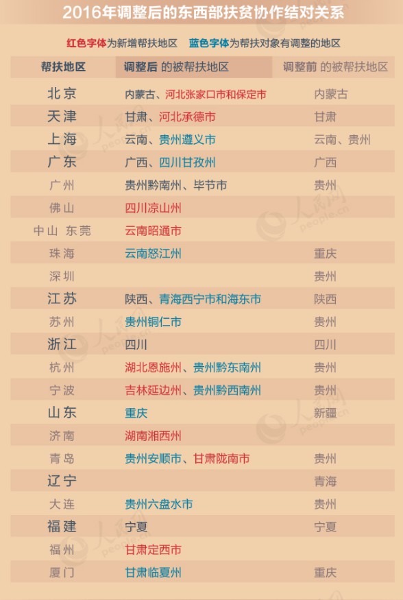 ▲2016年,東西部扶貧協(xié)作結(jié)對關(guān)系。(圖片來源:人民網(wǎng))