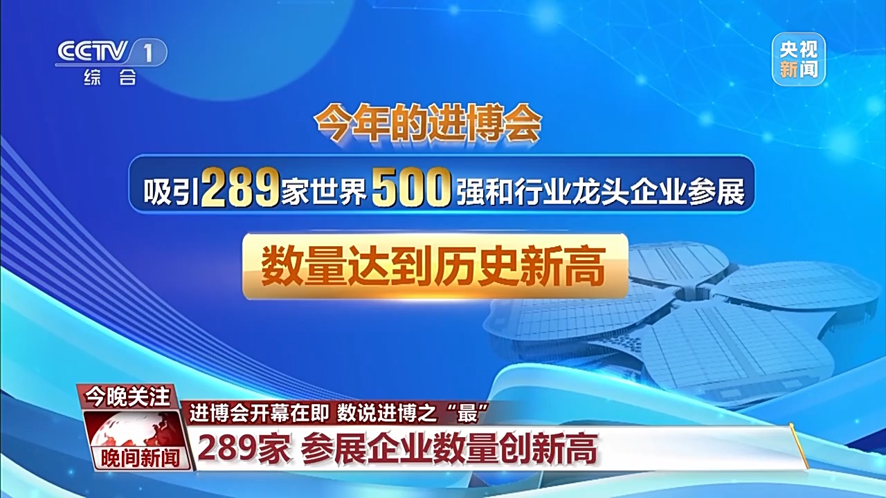 今年的進(jìn)博會(huì)吸引了289家世界500強(qiáng)和行業(yè)龍頭企業(yè)參展,數(shù)量達(dá)到歷史新高。來自154個(gè)國家、地區(qū)和國際組織的來賓將齊聚進(jìn)博。