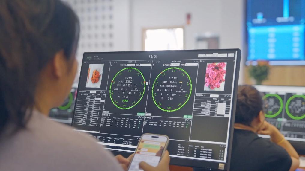 線下市場熱鬧非凡,線上拍賣平臺高效運行,數(shù)字化手段正在為花卉流通提供有力支撐。云南愛必達園藝科技有限公司副總經(jīng)理徐馨介紹,中心線上的日均交易量大約每天在40萬枝鮮切花,參與交易的供貨商每天大約200戶,線上拍賣的購買商大約180戶!盀楸U辖灰仔屎王r花品質(zhì),我們在拍賣前做好物流接收、質(zhì)檢、定級、數(shù)據(jù)錄入等各項準備,拍賣結(jié)束后,及時完成配貨、打包和發(fā)貨,確保每一枝鮮切花以良好的狀態(tài)送達客戶手中。”