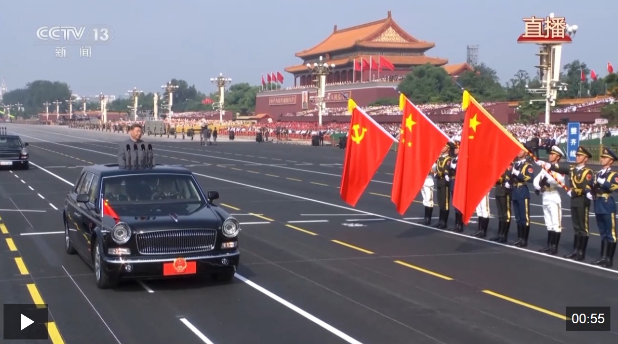 偉大旗幟光耀千秋。中國共產(chǎn)黨黨旗、中華人民共和國國旗、中國人民解放軍軍旗在受閱部隊(duì)最前方迎風(fēng)招展。檢閱車行進(jìn)至黨旗、國旗、軍旗前,敬禮號(hào)角響起,習(xí)近平停車肅立,以注目禮向三面旗幟莊嚴(yán)致敬。