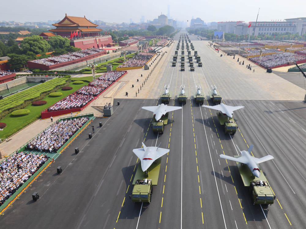 2025年9月3日,紀(jì)念中國(guó)人民抗日戰(zhàn)爭(zhēng)暨世界反法西斯戰(zhàn)爭(zhēng)勝利80周年大會(huì)在北京隆重舉行。這是裝備方隊(duì)接受檢閱。新華社記者 劉續(xù) 攝