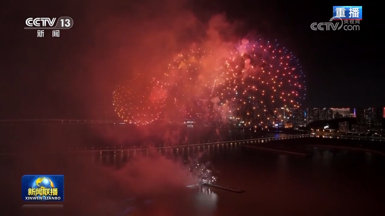 節(jié)日的夜晚璀璨多姿。10月1日,江西南昌舉行煙花晚會,5000架無人機(jī)、5萬余發(fā)煙花閃耀星空,營造出喜慶熱鬧的節(jié)日氛圍。重慶兩江四岸燈火璀璨,一場以“家國同慶”為主題的無人機(jī)燈光秀為祖國母親送上節(jié)日祝福。在河北涿州的“通市燈市”上,“五谷豐登”、“桃園三結(jié)義”、十二生肖等70多組花燈惟妙惟肖。