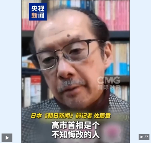近期,日本首相高市早苗涉臺錯誤言論在日本國內(nèi)引起強烈不滿。日本《朝日新聞》前記者佐藤章12月16日表示,臺灣問題屬于中國內(nèi)政,日本若對中國采取無端的先發(fā)制人攻擊,根本是“無理取鬧”。