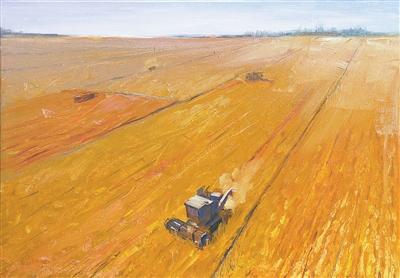 路易斯創(chuàng)作的有關(guān)河南豐收?qǐng)鼍暗挠彤?huà)。