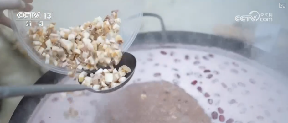 與傳統(tǒng)臘八粥不同的是,當(dāng)?shù)卦谥谱髋D八粥時,還將種植的中藥材桔梗和地方名小吃——片粉加入其中,滿足不同口味的需求。