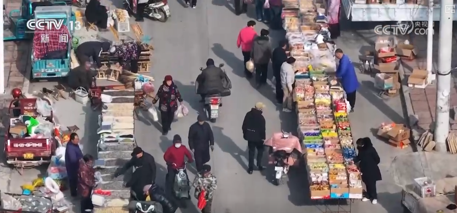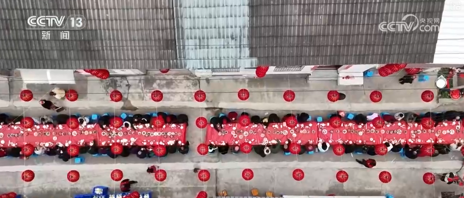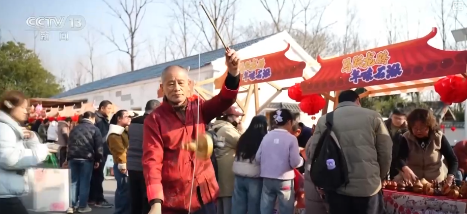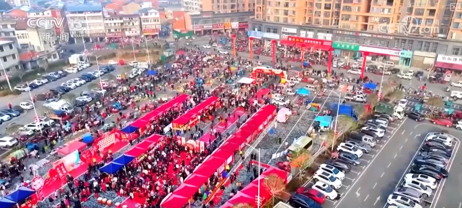 在湖北仙桃古村落,鄉(xiāng)親們圍坐共享傳統(tǒng)臘八席。在隨縣厲山鎮(zhèn),熱鬧的廟會、年貨市場也紅火開市。