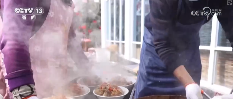 經(jīng)過2個多小時的慢火熬煮,熱氣騰騰的臘八粥香漫街巷,當(dāng)?shù)卮迕窈屯獾赜慰投伎擅赓M(fèi)領(lǐng)取。