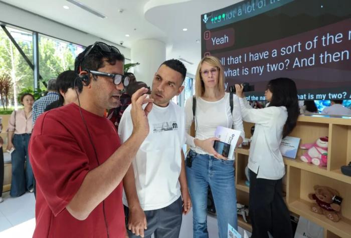 2025年9月29日,在“外國(guó)記者走進(jìn)北京”——經(jīng)開區(qū)專題推介活動(dòng)上,外國(guó)記者佩戴自動(dòng)翻譯眼鏡。中新社記者 賈天勇 攝