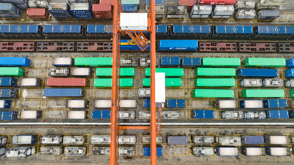 在貴陽國際陸港,滿載1800多噸鋁礬土的集裝箱即將裝車出發(fā),運(yùn)往廣西北部灣欽州港