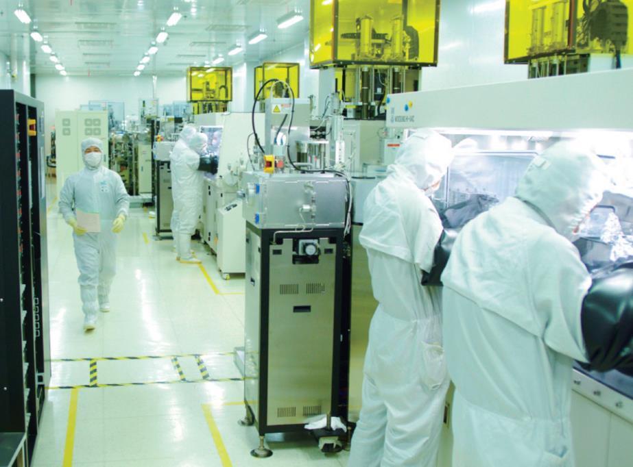 陜西萊特光電材料股份有限公司千級(jí)超凈無(wú)塵室內(nèi),工程師在操作蒸鍍機(jī),進(jìn)行OLED發(fā)光器件的制備和封裝。 受訪者供圖