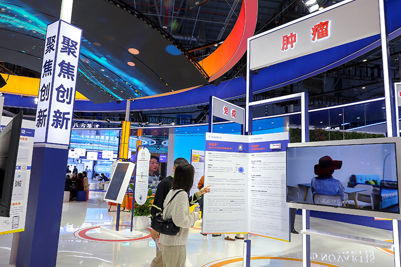 2025年11月9日,上海,第八屆進(jìn)博會(huì)醫(yī)療器械及醫(yī)藥保健展區(qū)吸引觀眾駐足觀看。