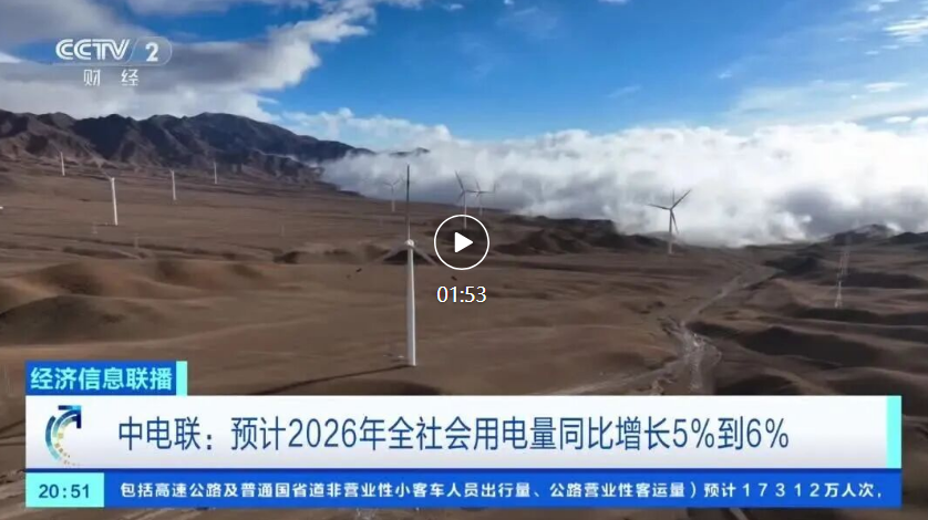 中電聯(lián):預(yù)計2026年全社會用電量同比增長5%到6%