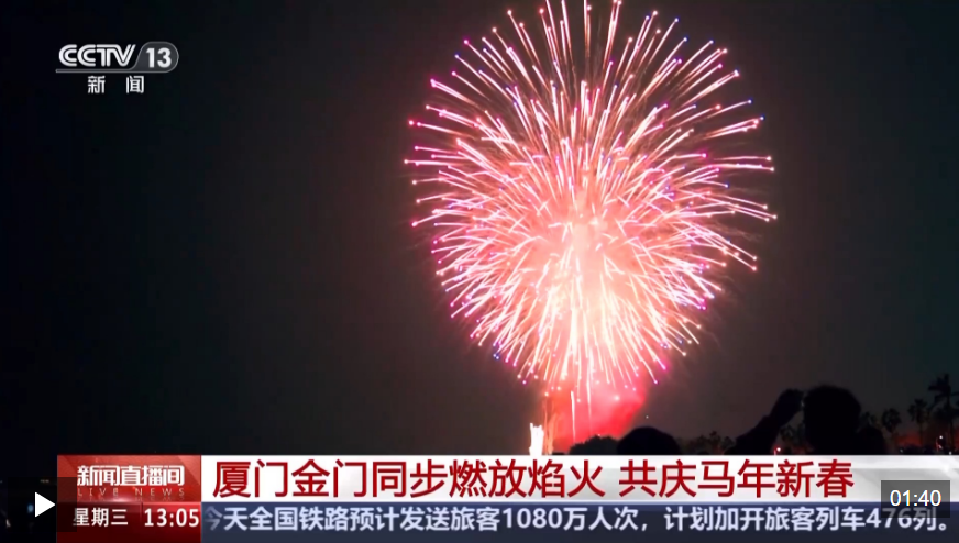2026年海峽兩岸春節(jié)焰火晚會大年初一晚上在廈門、金門兩地同步上演,為兩岸同胞獻上一場視聽交融的藝術(shù)盛宴,傳遞溫暖祝福。