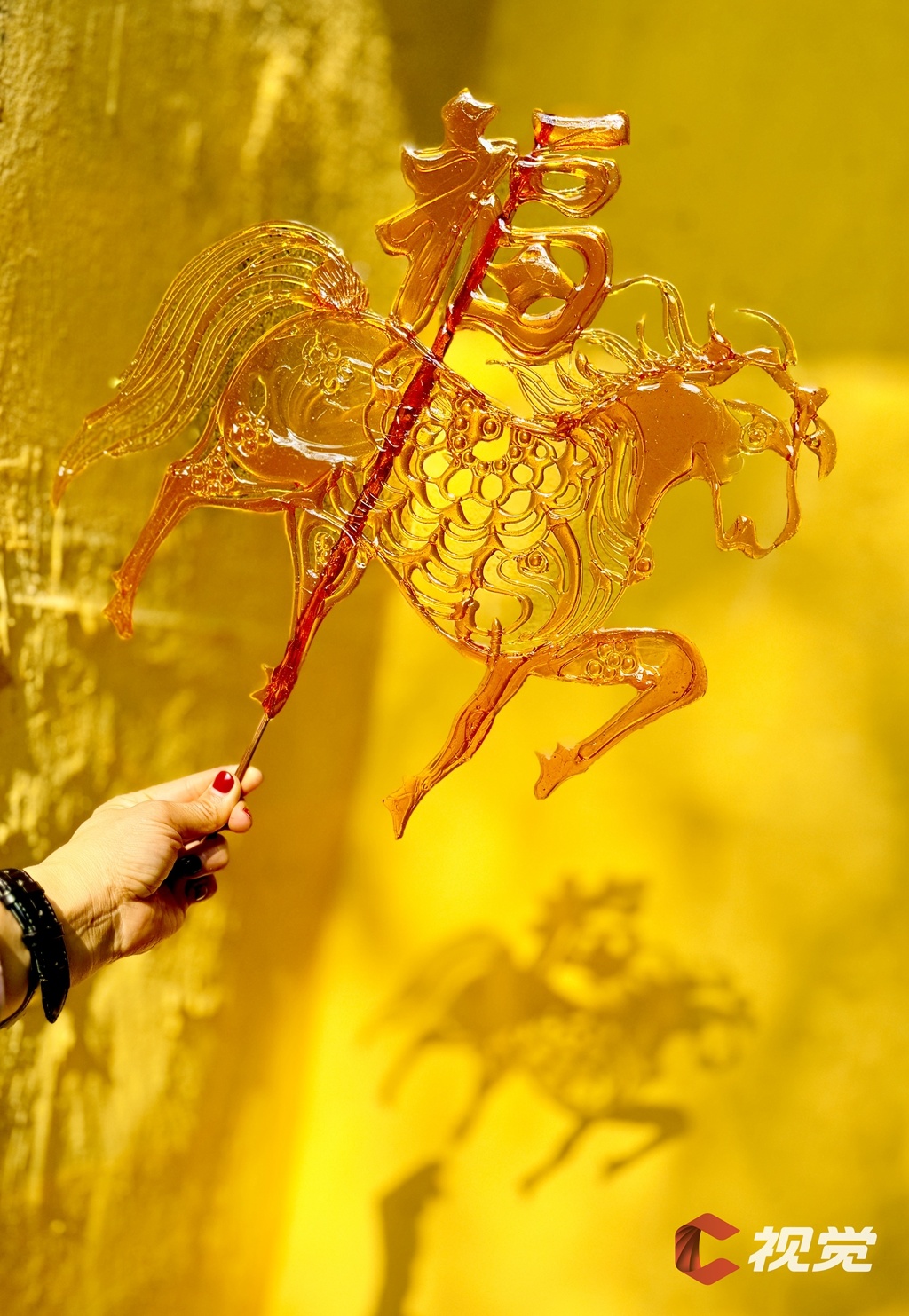 2月21日,成都市雙流區(qū)彭鎮(zhèn)老街,游客手持“馬!碧钱(huà),定格馬年福氣。