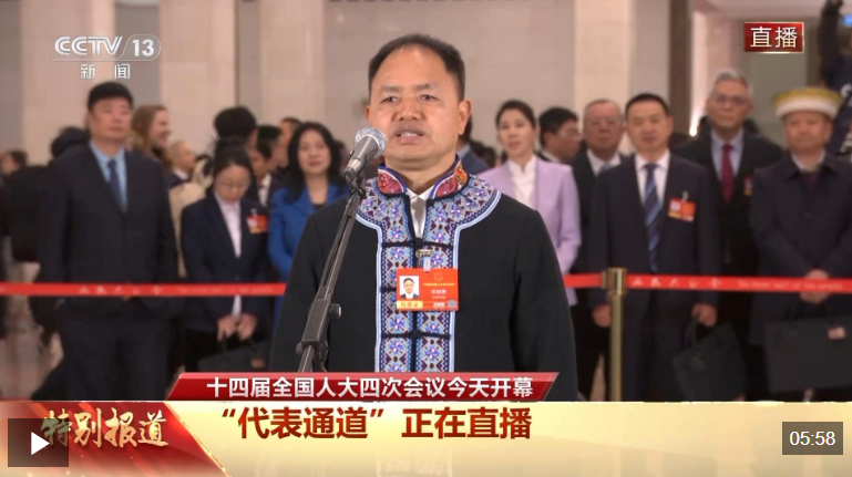 今天(3月5日),十四屆全國(guó)人大四次會(huì)議首場(chǎng)“代表通道”在人民大會(huì)堂舉行,全國(guó)人大代表、云南省文山州廣南縣落松地小學(xué)教師農(nóng)加貴接受記者采訪。