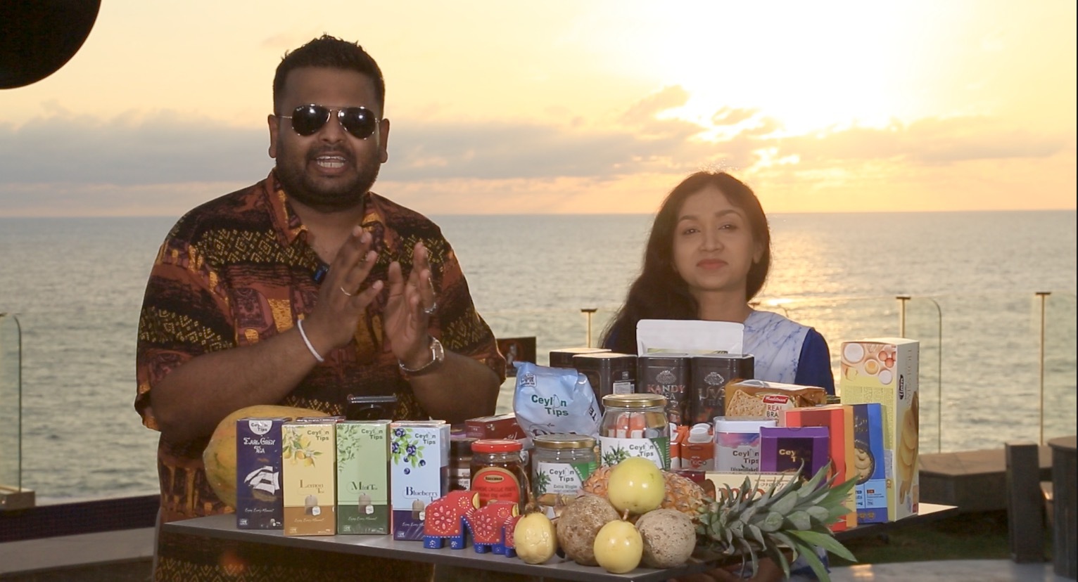 晉蘭加在斯里蘭卡的海邊做直播帶貨