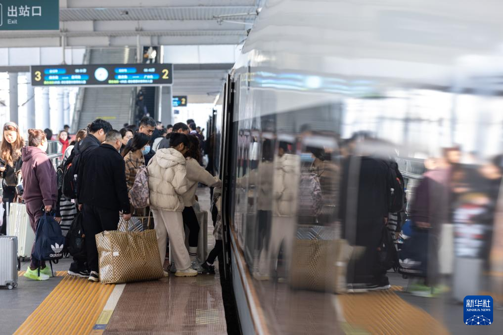 3月13日,旅客在浙江湖州站站臺乘車。