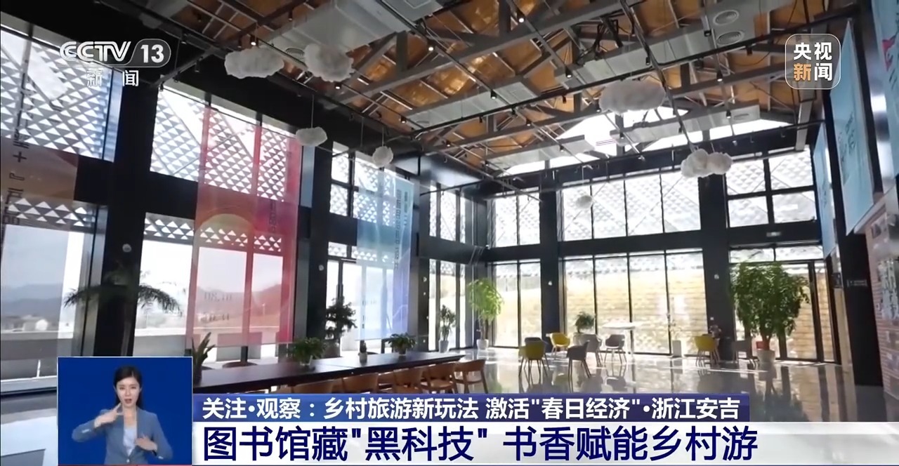 總臺央視記者 鄭瑋瑋:這里是安吉余村的未來圖書館,大家可能想不到,這座高顏值的建筑,還是一座能發(fā)電、能儲能的綠色電站。它的屋頂鋪設(shè)了光伏板,每年發(fā)的電,不僅能滿足圖書館全年的用電需求,多余的電量還能并入電網(wǎng),為村集體帶來穩(wěn)定的收益。