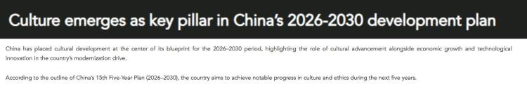 文章最后說,在邁向2035年全面建設(shè)社會主義現(xiàn)代化國家的長期目標(biāo)過程中,文化建設(shè)被置于國家發(fā)展的重要位置,體現(xiàn)了中國推動物質(zhì)文明和精神文明協(xié)調(diào)發(fā)展的戰(zhàn)略部署。