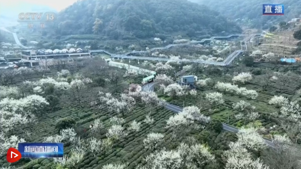 歡迎大家跟隨直播來到杭州蕭山的三泉王村。每年這個時候,都是村里最美的時節(jié)。因?yàn)?00多畝李花在此時盛放,一樹樹的雪白點(diǎn)綴在青翠的山野間,像是春天里下了一場不期而遇的薄雪。微風(fēng)拂過,花影搖曳,真有種“半山李花滿山雪”的意境。李樹下,還有千畝茶園,這會春茶也開采了,隨處可見農(nóng)人采茶的忙碌身影。