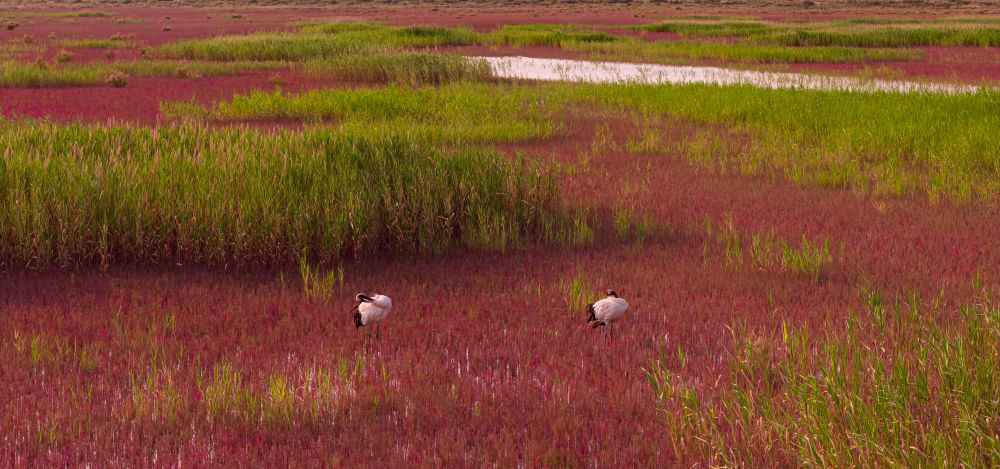 與黃河三角洲的搖曳蘆葦之間